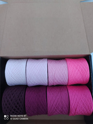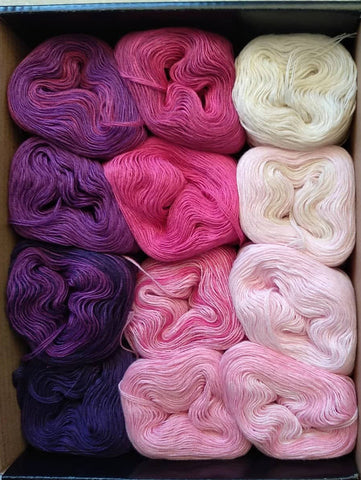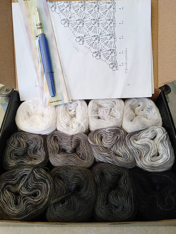 Very nice color combinations. A big advantage is that a pattern is suggested along with the yarn, which is of very good quality. As for the owner, I have no words!